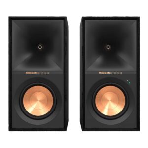 Plug-and-play powered bookshelf speakers with Bluetooth, integrated phono pre-amp, digital and analog inputs, a 1″ LTS aluminum tweeter with Tractrix® horn and a 5.25″ spun-copper TCP woofer — designed to deliver Klipsch Reference clarity and room-filling sound without an external amplifier.