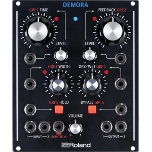 DEMORA from Roland is a modular delay effects processor designed for modular synth users, keyboard players, guitarists, DJs, and musicians looking to expand their sound. The delay algorithm features a smooth, creamy sound with a quick response. The 20 µs to 10 sec delay range and buffer hold function can create anything from subtle widening to dramatic rhythmic effects.