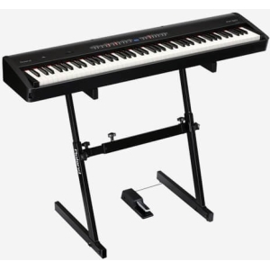 Designed for intermediate and advanced players, the black FP-60X from Roland provides the opportunity for the budget- and space-constrained student/performer to have access to the sound of a real piano in a light and portable form factor. The 88-key instrument delivers an authentic piano experience, both from the SuperNATURAL Piano engine and the weighted, touch-sensitive PHA-4 Standard keyboard with the escapement and ivory-feel keys found in the company’s high-end home pianos.