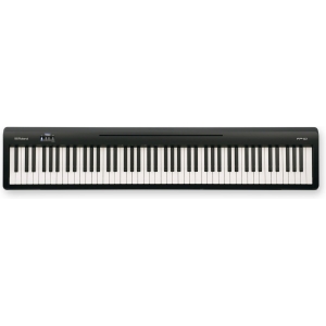 Featuring 88 progressive hammer-action keys, the F-140R by Roland is a black digital piano sporting a built-in metronome, an “ivory feel” keyboard, and a contemporary, compact design. It features such tones as acoustic piano, electric piano, strings, organs, guitars, and more. Stereo speakers round out the unit, while Roland’s proprietary Headphones 3D Ambience effect provides acoustic-space emulation for silent practicing.