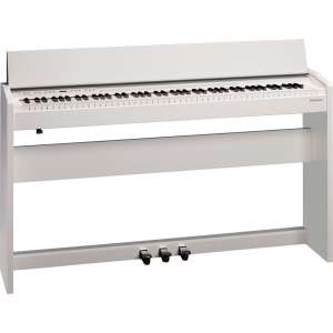 Featuring 88 progressive hammer-action keys, the F-140R by Roland is a white digital piano sporting a built-in metronome, an “ivory feel” keyboard, and a contemporary, compact design. It features such tones as acoustic piano, electric piano, strings, organs, guitars, and more. Stereo speakers round out the unit, while Roland’s proprietary Headphones 3D Ambience effect provides acoustic-space emulation for silent practicing.