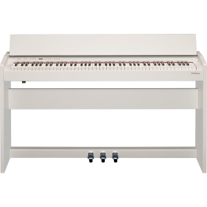 The elegant, polished white DP603-PWC from Roland is a digital home piano with authentic piano sounds and a slim, minimalist design that complements modern living spaces. The DP603-PW delivers a rich, detailed sound with the company’s SuperNATURAL Piano Modeling technology and a grand piano touch with the 88-key PHA-50 Progressive Hammer Action keyboard, which combines the look and feel of wood with the durability of modern materials. The onboard speaker system projects warm, enveloping sound with controllable volume. With Bluetooth enabled, it can be used to wirelessly stream songs from a smartphone or tablet, suitable for both play along and background music when entertaining.