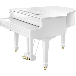 A mini grand piano that sparks creativity and complements your living space. If you’ve longed to own a grand piano but were discouraged by the cost or weight, then the Roland GP607 could be the perfect addition to your home. A stylish digital mini grand piano in polished ebony or white, the GP607 pays homage to the classic grand piano form with an imposing-yet-graceful design. And although its appearance is traditional, explore a little deeper and you’ll discover the very latest technology. Bluetooth® connectivity lets you wirelessly stream songs from your tablet/phone through the GP607’s powerful 4.1 multi-channel speakers, filling your room with rich, clear sound. SuperNATURAL Piano Modeling technology offers supremely realistic piano sound and, along with the expressive touch of the new PHA-50 keyboard, provides a playing experience that will satisfy the connoisseur. And a host of onboard learning features—including connection to piano education apps—will ensure that you’ll stay motivated and your piano skills will constantly improve. Whether you want a strikingly beautiful addition to your living space or a sophisticated mini grand piano that supports your family as they learn to play, the GP607 brings beauty, elegance, and evocative piano performance into your home.