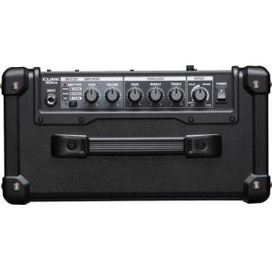 The black Cube Lite Guitar Amplifier from Roland is a 2.1 channel audio system designed to allow you to play along with and record to your iPhone, iPad, or iPod touch. A pair of three-inch stereo speakers and a three-inch subwoofer produces 10 watts of total output. If you need to practice silently, the Cube Lite has a 1/8″ headphone jack that mutes the speaker output when in use. Featuring Roland’s COSM amp modeling technology, you can select your desired tone from built-in JC Clean, Crunch, and Extreme settings. The Cube Lite connects to any iOS device through its i-Cube Link input and included four-pole mini cable. With the free CUBE JAM app, you can play along with your own tracks, or record directly to your iDevice. You can also use the Cube Lite as a playback device for your digital music library when not jamming.