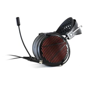 High-end open-back planar-magnetic gaming headset with a detachable noise-attenuating boom mic, magnesium chassis and large 106 mm planar drivers — built for immersive gaming and high-fidelity listening.