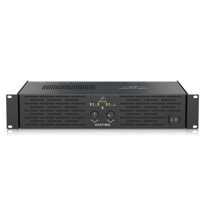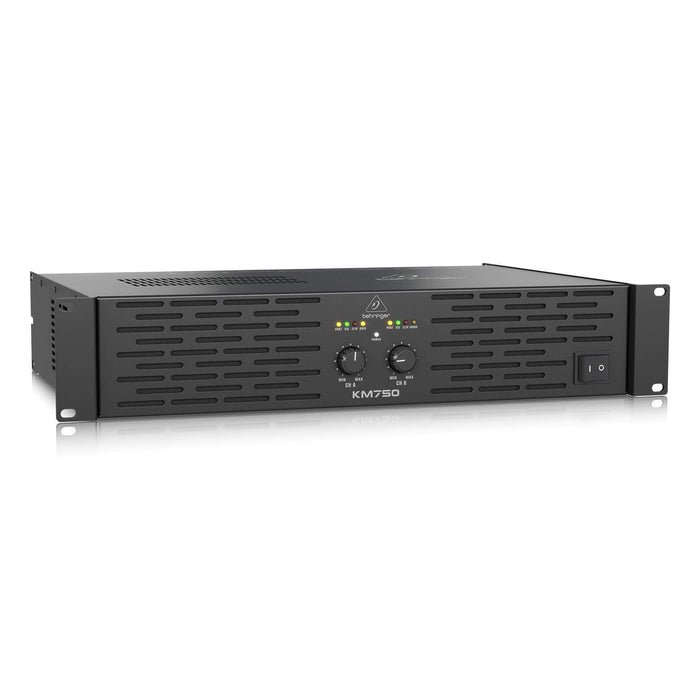The Behringer KM750 750-watt stereo power amplifier combines ample power with efficient performance. Behringer’s Accelerated Transient Response design coordinates your speakers with the speed of the signals that are passing through them, ensuring a tight and punchy sound. Easy-to-use front panel controls and LED indicators make operating the KM750 child’s play. The XLR, 1/4″, and RCA input connectors on the KM750’s rear panel accommodate nearly any source. Connect your speakers securely to the KM750’s dual locking connectors or touch-proof binding posts. A built-in limiter ensures maximum output with reliable overload protection. The Behringer KM750 is a workhorse 750-watt stereo power amplifier.