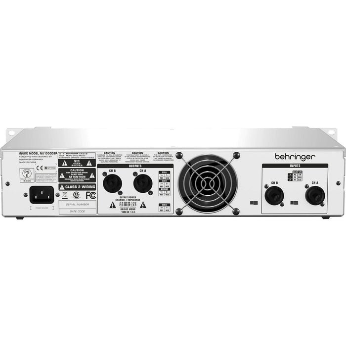 The iNUKE NU1000DSP power amplifier packs 1,000 Watts (2 x 500 Watts @ 2 Ohms; 2 x 300 Watts @ 4 Ohms; 1,000 Watts @ 4 Ohms in Bridge mode) into exceptionally lightweight (8 lbs/3.5 kg) and rack- mountable packages. Plus, the built- in DSP and 24-bit/96 kHz converters ensure the ultimate signal integrity with an extremely broad dynamic range. And because the NU1000DSP is so much more efficient than conventional designs, it runs cooler and doesnt require the massive heat sinks and heavy toroid transformers typically associated with its conventional counterparts. Thanks to our Zero-Attack limiters, which offer maximum output level with exceptionally-reliable overload protection, you can run the NU1000DSP full-out for hours on- end. Our revolutionary high-density Class-D technology, combined with ultra-efficient, switch-mode power supplies, ensures this feather-light powerhouse will drive your rig effortlessly for many years to come.
