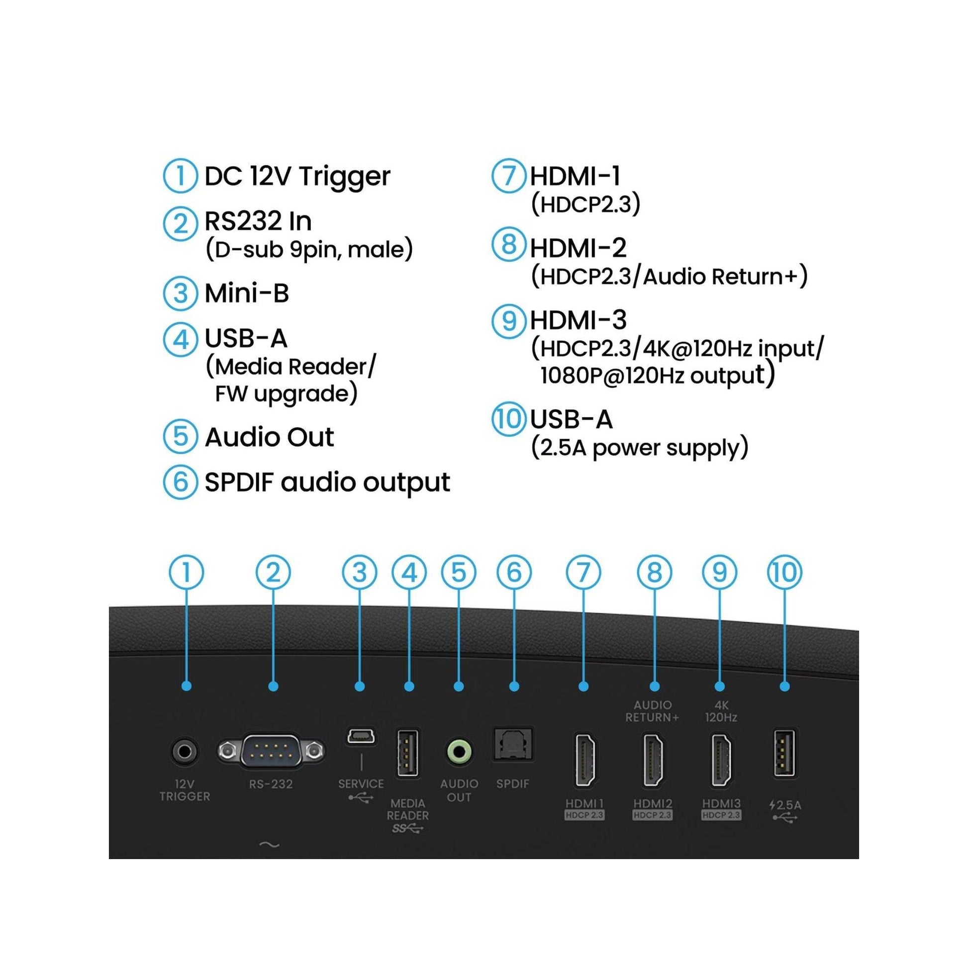 Advanced HDR-PRO (including HDR10+) frame-by-frame optimization, Dynamic Black and Local Contrast Enhancer provide improved detail across bright and dark areas. The projector ships factory-calibrated (Rec.709 Delta E <3) and includes Filmmaker Mode, AI Cinema & HDR AI Cinema modes for accurate, director-intended playback.