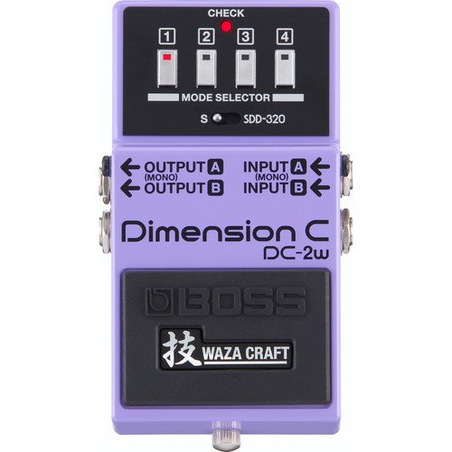 A part of their Waza Craft series, the BOSS DC-2W combines two classic Roland Dimension effects in a single pedal, one suitably sized for your pedalboard. Similar to a chorus effect, the DC-2W provides time-based manipulation that adds dimension to your sound, subtly enhancing both width and depth. The pedal offers two modes: Standard, which gives you the sound of the original DC-2 Dimension C pedal, and SDD-320 mode, which authentically reproduces the sound of a vintage Roland unit heard on many hit records. The interface is rather simple and intuitive: four different selectors switch among presets. Press two selectors at once to unlock even more presets. Between the two modes, you can get 20 different sounds out of the pedal.