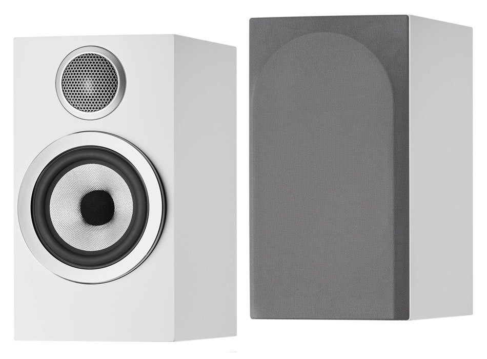 Enjoy your music and other audio sources with enhanced high-end response with your amplifier and this pair of satin white Bowers & Wilkins 707 S2 2-Way Bookshelf Speakers. They feature a 50 Hz to 28 kHz frequency response with 5″ Continuum cone mid-woofers and 1″ carbon dome tweeters to emphasize the treble in your audio. The rear bass port is designed to augment the bass effects. The 707 S2 speakers each have two pairs of binding posts, allowing you to bi-amp or bi-wire them. A pair of black grilles are included to augment the look of the speakers. The Continuum cone mid-woofers and carbon dome tweeters combine to provide cohesive sound. The carbon-dome tweeters are designed to raise the breakup threshold to 47 kHz for enhanced imaging accuracy and detail. The Continuum cone drivers help deliver voices and instruments with purity and precision.