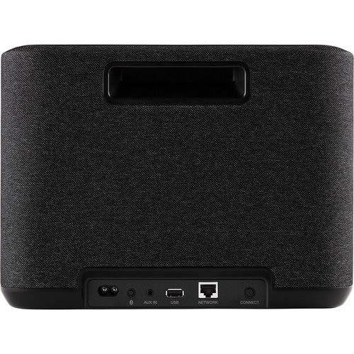 The black Denon Home 250 Wireless Speaker allows wireless audio streaming throughout your home with Wi-Fi, Bluetooth, and AirPlay 2. It supports nearly any wireless audio source and includes built-in access to Spotify, Amazon Music HD, TIDAL, TuneIn, and Deezer. The speaker features three quick-select buttons for easy access to preferred sources, an 1/8″ aux jack, a USB port for compatible thumb drives, and an Ethernet port for wired connectivity.