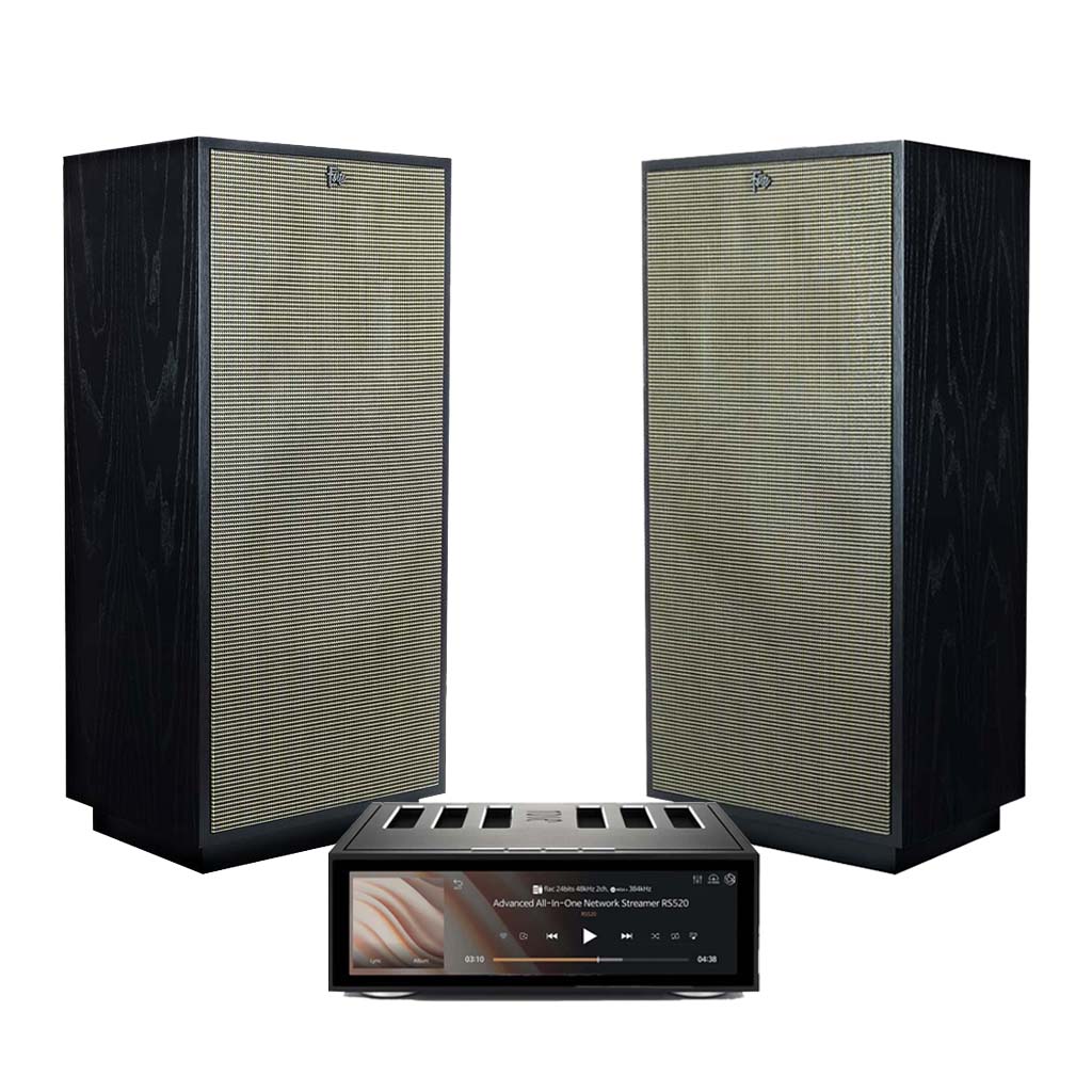 A premium Hi-Fi system bundle pairing Klipsch’s heritage Forte IV floorstanding speakers with the HiFi Rose RS520 advanced all-in-one network streamer — integrated amplifier, streamer, DAC and preamp with a large touchscreen and powerful GaN Class-AD amplification for 250W per channel.