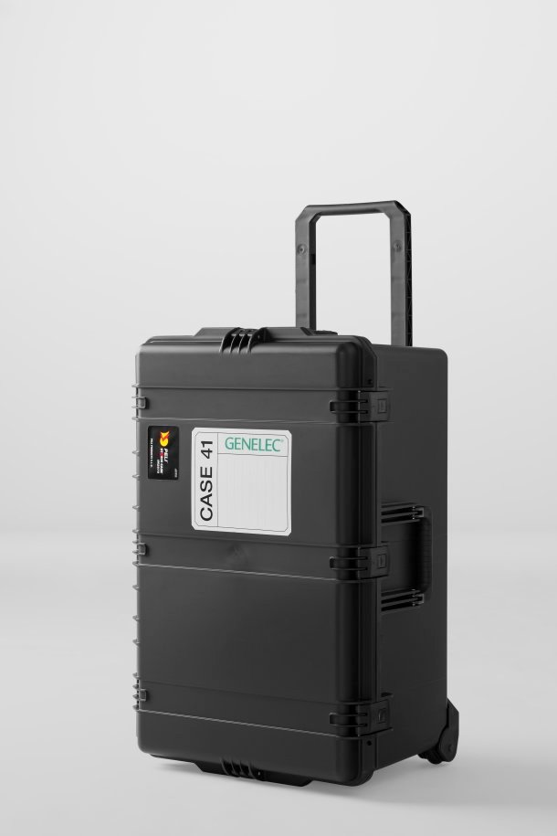 The case comes with easy-open double throw latches for fast and easy access. A rubber over-moulded handle, a rugged extendable handle, and four strong polyurethane wheels provide extreme carrying comfort. The foam insert is custom-made in Finland to ensure the perfect fit and the best possible protection for your Genelec speakers. All Peli cases come with a limited lifetime warranty. Available in matte black color.