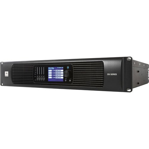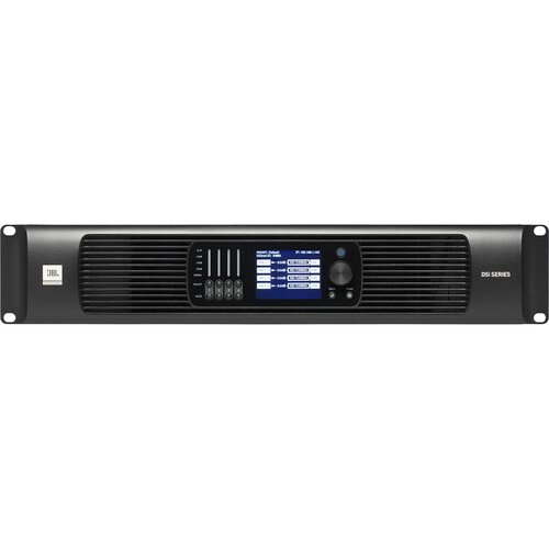 The DSi-Series LA4-D is a 1200W 4-channel power amplifier designed for JBL cinema loudspeakers, featuring 96 kHz/32-bit DSP with delay, EQ, crossovers, FIR processing, and LevelMAX limiting. Its DriveCore technology ensures high efficiency and reliability, powering up to four surround speakers per channel. The LA4-D includes built-in cinema speaker tuning presets, an LCD front panel for easy configuration, four analog inputs, and DANTE/AES67 support for integration with Dolby Atmos and other systems.
