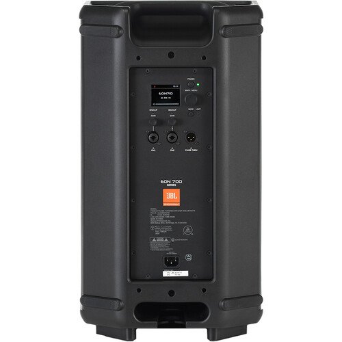 The JBL EON710 is built for versatility, functioning efficiently as a main PA system or a stage monitor. A pair of these speakers can effectively cover an audience of up to 250 people. The user-friendly LCD menu on the back allows quick switching between optimized presets tailored for different use cases. The built-in DSP provides comprehensive control over the system, including a 3-channel mixer, dbx DriveRack with Automatic Feedback Suppression (AFS), an 8-band output EQ, microphone ducking, and a 100ms speaker delay.
