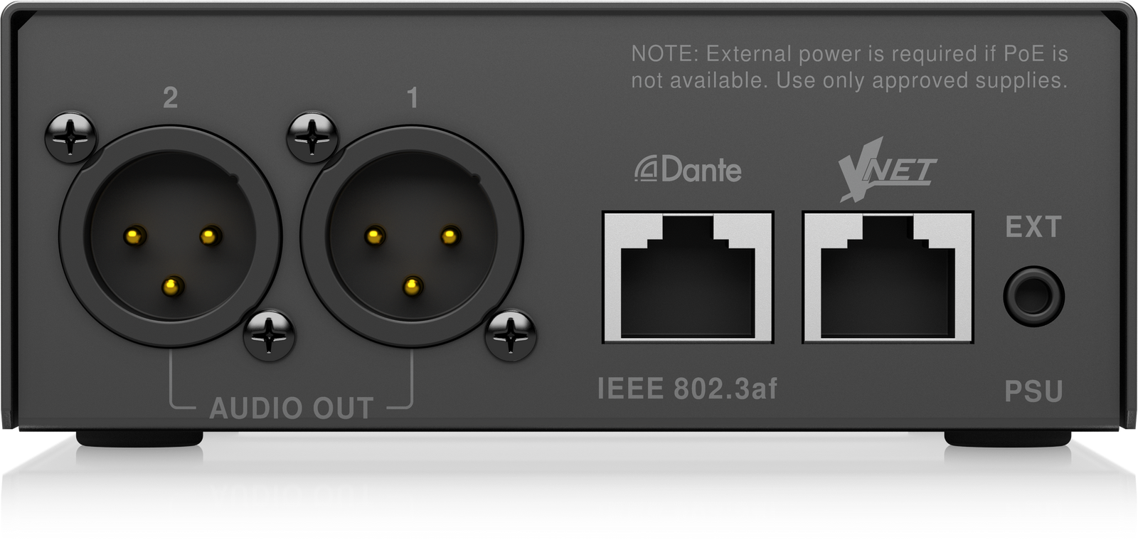 - Facilitates Dante audio connection to VNET and other non-Dante products