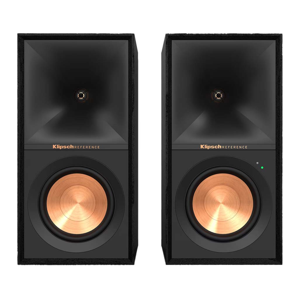 Plug-and-play powered bookshelf speakers with Bluetooth, integrated phono pre-amp, digital and analog inputs, a 1″ LTS aluminum tweeter with Tractrix® horn and a 5.25″ spun-copper TCP woofer — designed to deliver Klipsch Reference clarity and room-filling sound without an external amplifier.