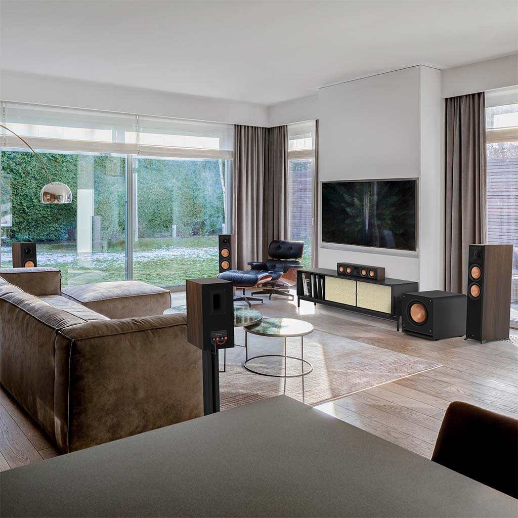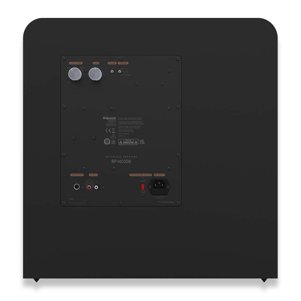 A high-performance 14″ Klipsch Reference Premiere subwoofer with a 500W (RMS) Class D amplifier, front-firing Aerofoil slot port and Cerametallic™ woofer that reaches down to 16 Hz for deep, accurate bass.