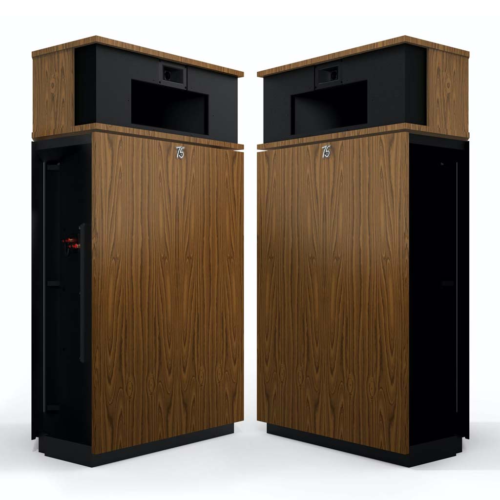 The Klipschorn 75th Anniversary Edition is a tribute to Klipsch’s legacy, offering a limited edition speaker that combines advanced technology with classic design. This speaker features a fully enclosed low-frequency horn cabinet, allowing for flexible placement without compromising bass performance. The 1″ titanium tweeter paired with a 90° x 40° Tractrix® horn extends high-frequency performance to 20kHz, ensuring detailed and dynamic sound reproduction.