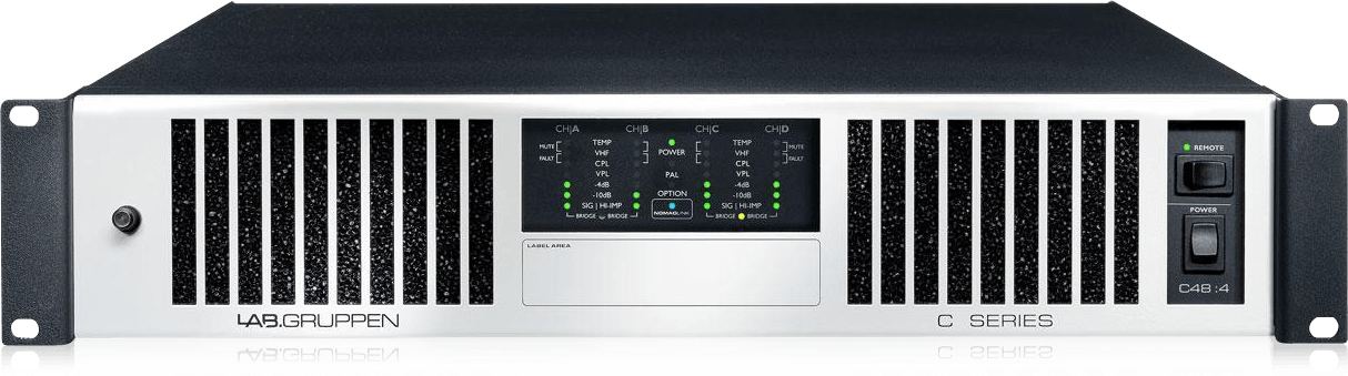 The C 48:4 is the Third Largest Amplifier in the C Series Family, Delivering an Impressive 4 × 1200 W at 4 OHMS. The C 48:4 is the third largest amplifier in the C Series family, delivering an impressive 4 × 1200 W at 4 ohms. The exceptional power output plus a long list of protection and monitoring features are all packed into a 2U chassis.
