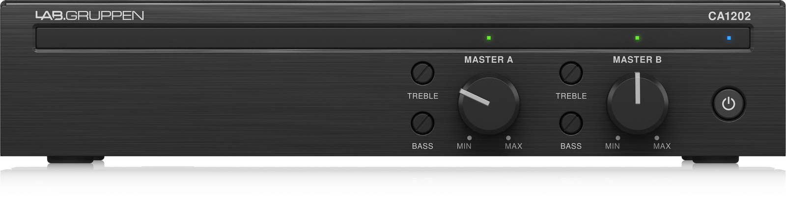 The CA1202 is a 2 x 120 Watt dual-channel commercial amplifier designed for excellent distributed audio performance in both Low-Z (4/8 Ohm) and High-Z (70/100 V) loudspeaker configurations, making it ideal for environments such as bars, restaurants, retail spaces, hotels, and educational or corporate venues. Its user-friendly installation and operation ensure accessibility for non-technical users, balancing high-quality sound with power efficiency and reduced operating costs.