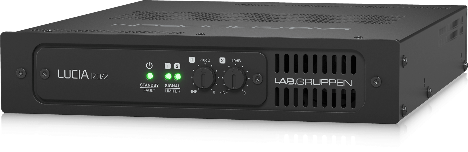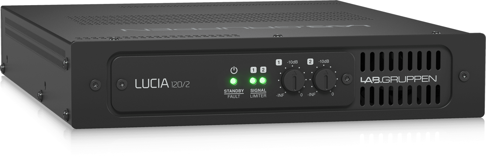 Ideal for many AV applications requiring consistently outstanding performance, LUCIA offers a logical, cost-efficient, and scalable solution that often eliminates the complications and added expense of a centralized equipment room. Featuring a digital, firmware-controlled front end coupled with a robust and highly efficient Lab Gruppen output stage, LUCIA 120/2 stands as a reliable and high-performing compact amplifier in its category.