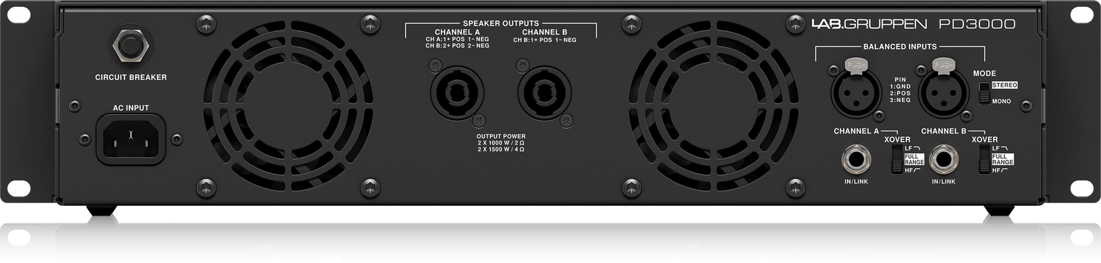 Lab Gruppen PD3000 3000W 2-Channel Class-D Amplifier for Live Sound