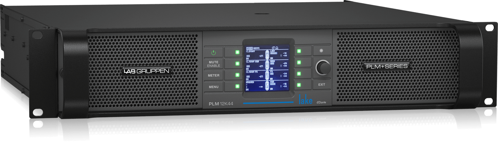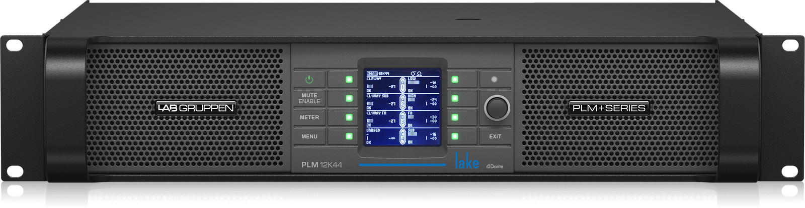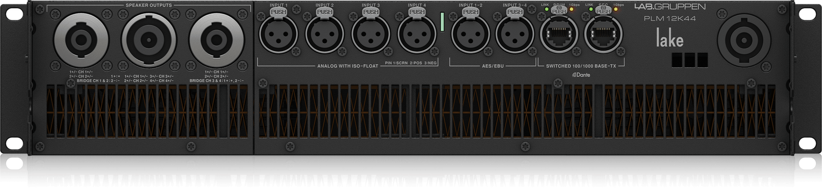 The PLM 12K44 combines a 4-in, 4-out configuration with industry-standard Dante Networking, setting the benchmark for powered loudspeaker management systems. The PLM 12K44 is the successor of the proven and trusted Lab Gruppen touring foundation exemplified by the iconic PLM series, now with an added powerful feature set for optimized performance. With twice the processing power via the latest Lake Controller, plus industry-standard Dante® networking, the PLM 12K44 is at the forefront of Powered Loudspeaker Management Systems.