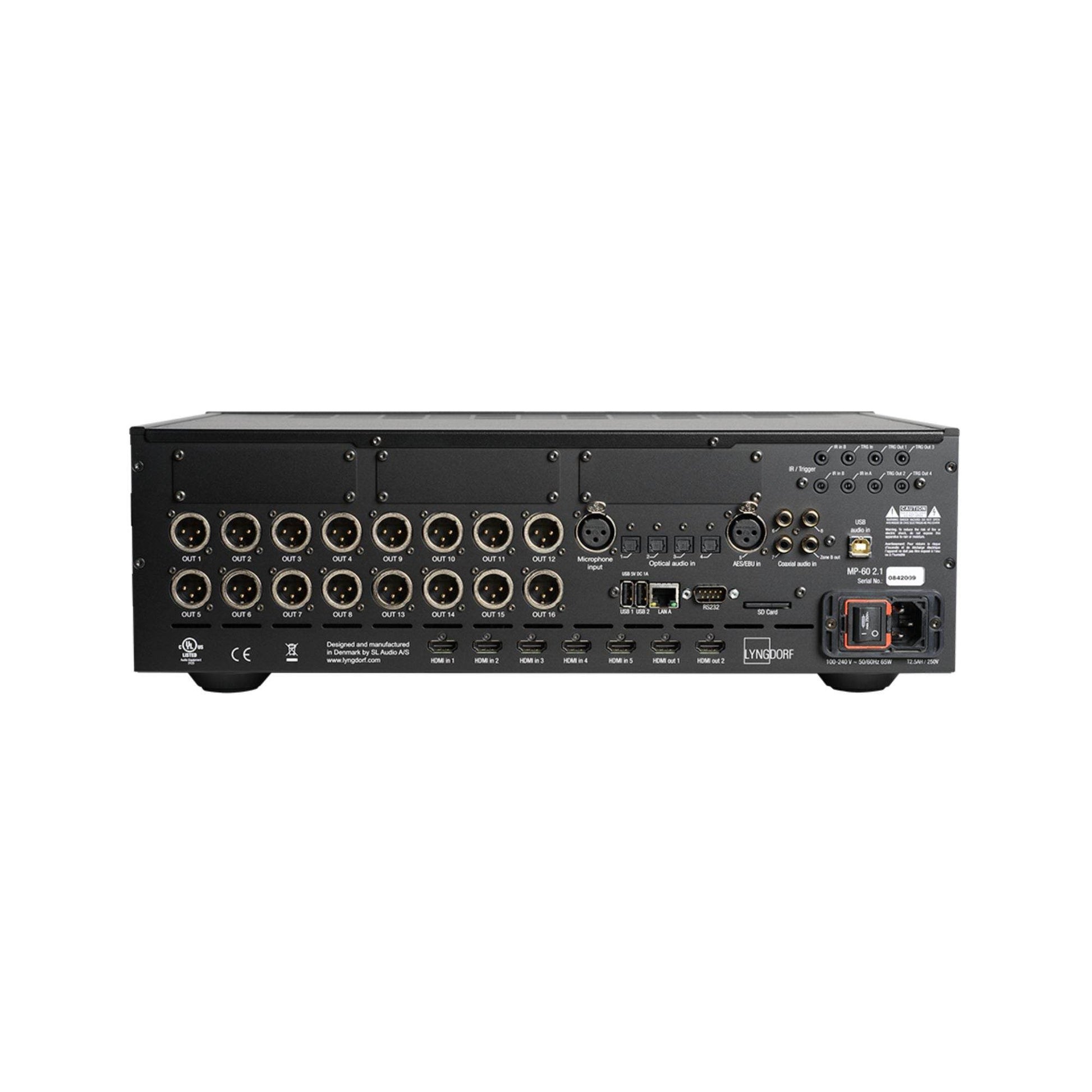 The Lyngdorf Audio MP-60 is designed and developed in Skive, Denmark, and brings Lyngdorf’s acclaimed digital signal processing and RoomPerfect™ room correction to high-end home theatre systems. The MP-60 decodes up to 16 native audio channels and supports the latest immersive formats (Dolby Atmos®, DTS:X® Pro and AURO-3D®), making it suitable for elaborate multi-channel home cinema configurations.