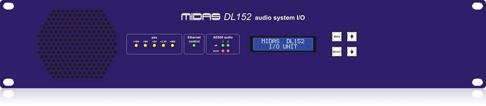 The DL152 is a 2U 19″ rack I/O unit with 24 line level outputs, featuring dual-redundant AES50 network ports. It ensures the renowned Midas sound quality and is compatible with Midas PRO and M32 Series digital consoles, making it perfect for reliable digital snake connections.