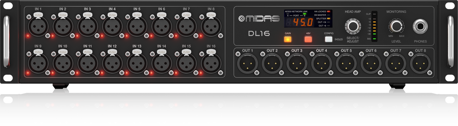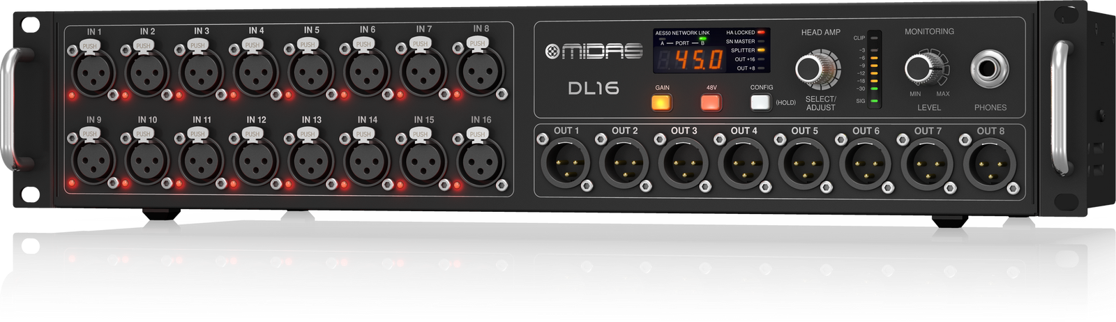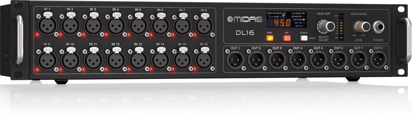 Midas DL16 Digital Stage Box with 16 Mic Preamps and 8 Outputs for Live Sound