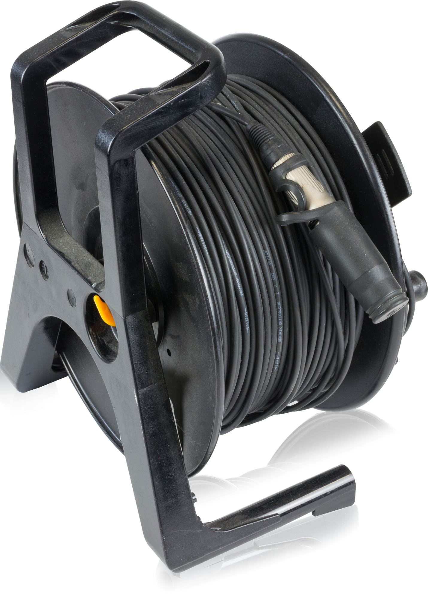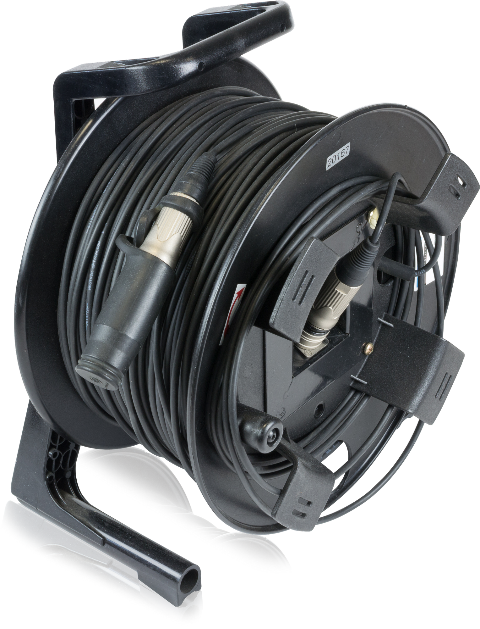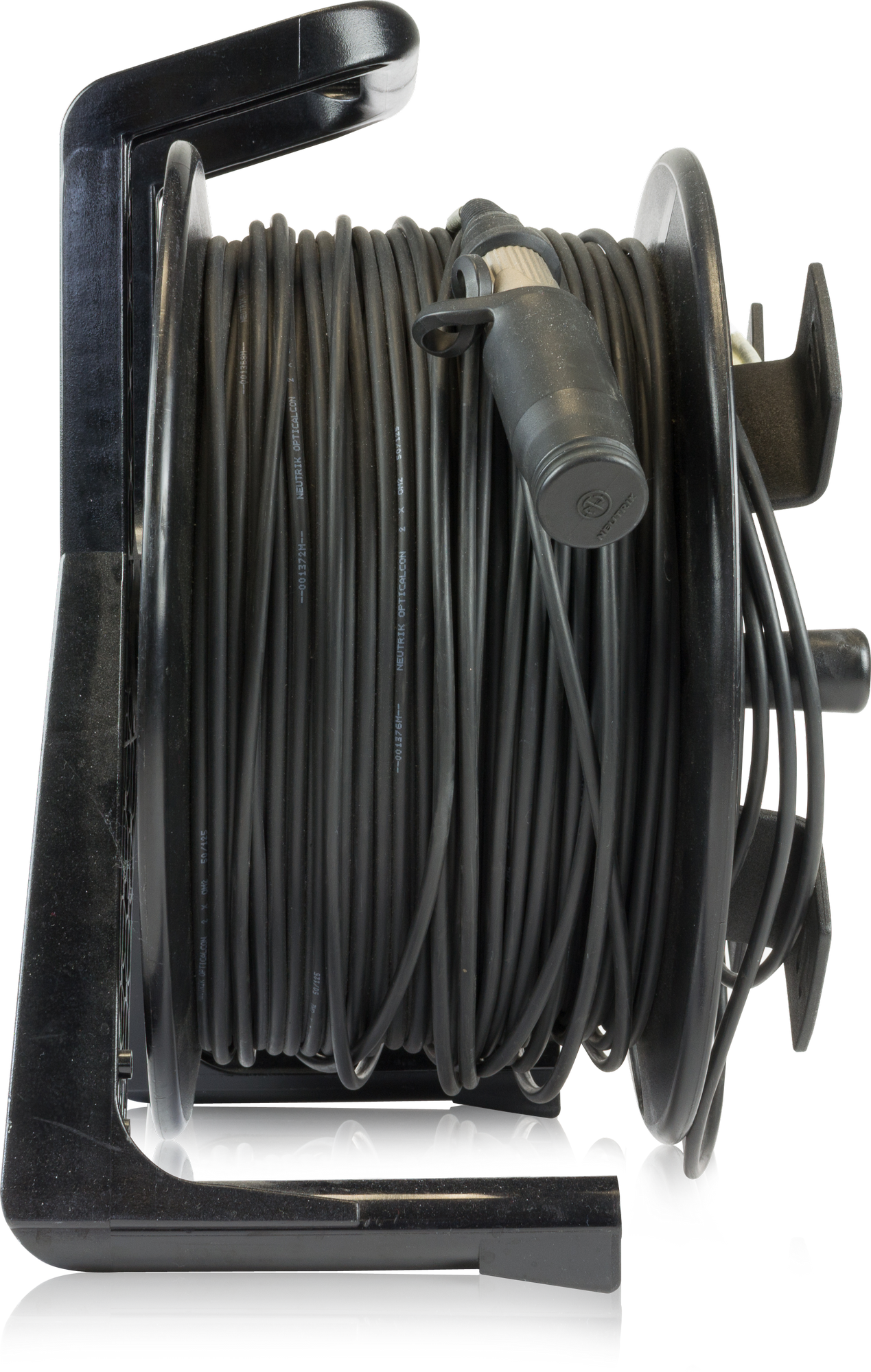 The FIBRE-150M ruggedised multimode optical fibre cable provides a bidirectional data link in a single 150 metre cable and features Neutrik opticalCON DUO connectors for high reliability, especially desirable in concert touring and festival applications where the optical connection needs to be protected against the ingress of dirt and dust. When used in conjunction with MIDAS and KLARK TEKNIK products equipped with optical snake interfaces, the FIBRE-150M cable can transmit 192 bidirectional channels of 24 bit digital audio at 96 kHz sample rate.