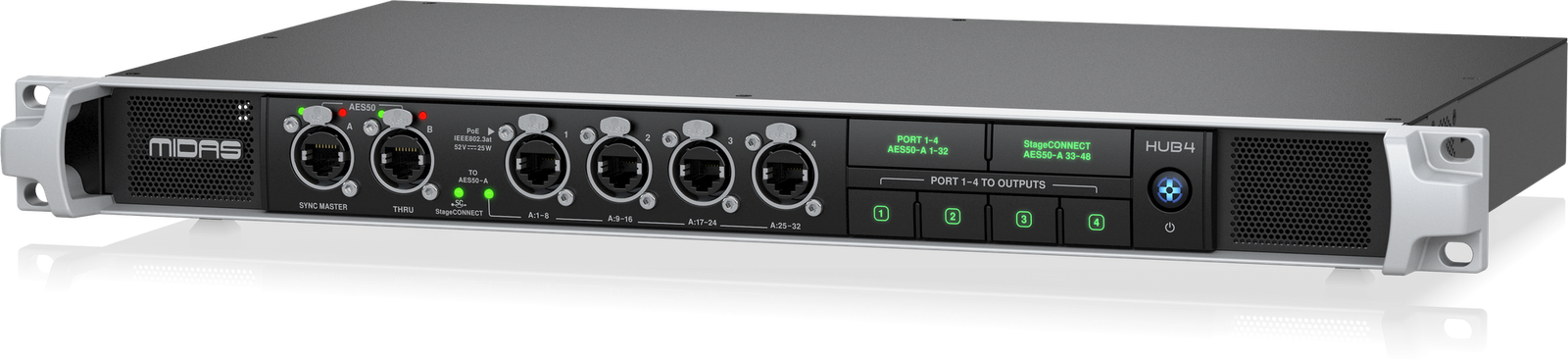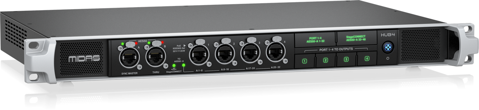 Midas HUB4 Monitor System Hub with 4 PoE Ports, AES50 48 kHz, 16 Analog Outputs