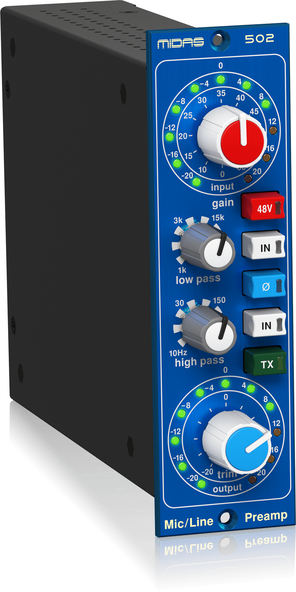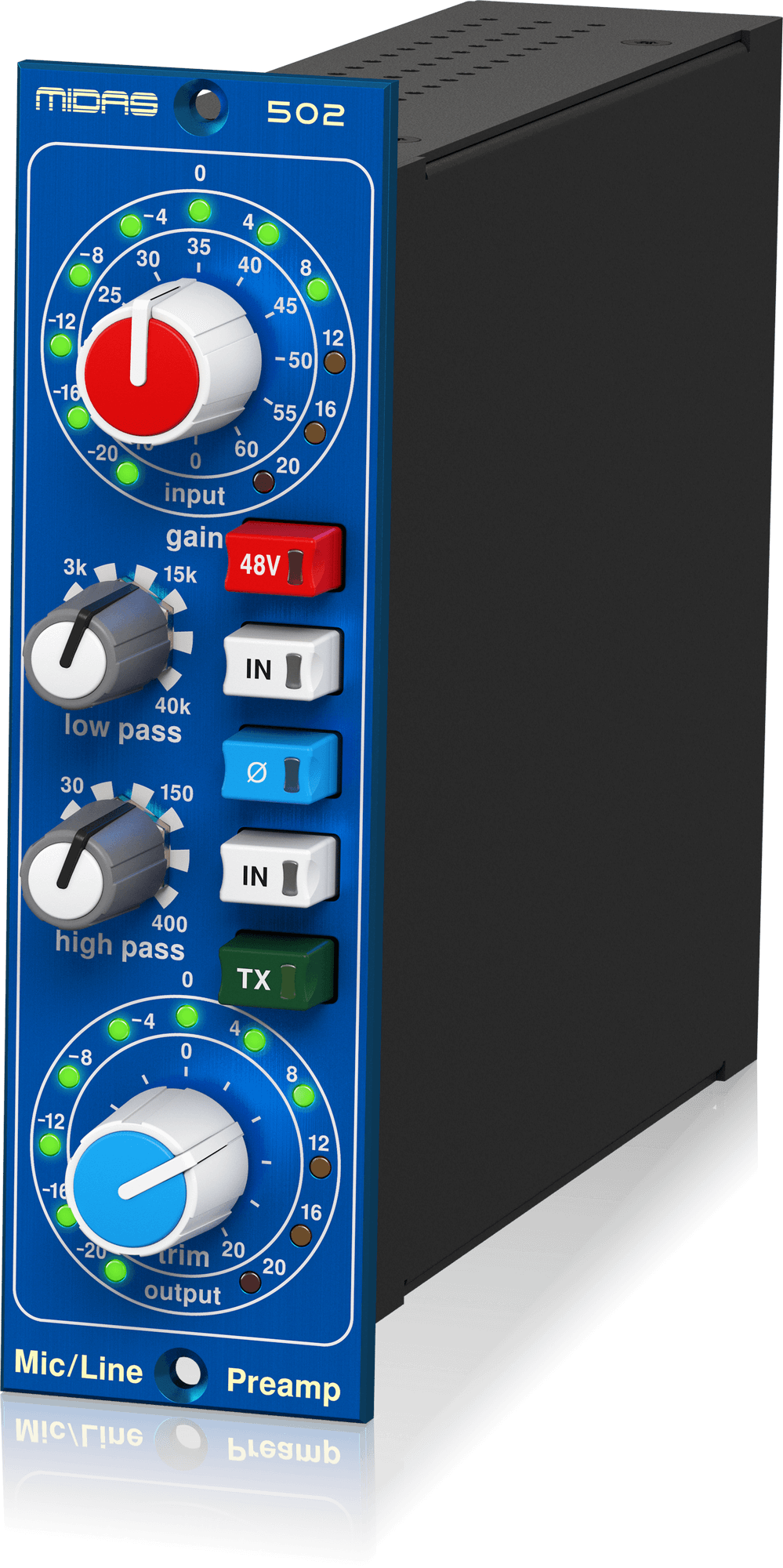 - High performance, compact 500 Series premium Midas microphone/line preamplifier