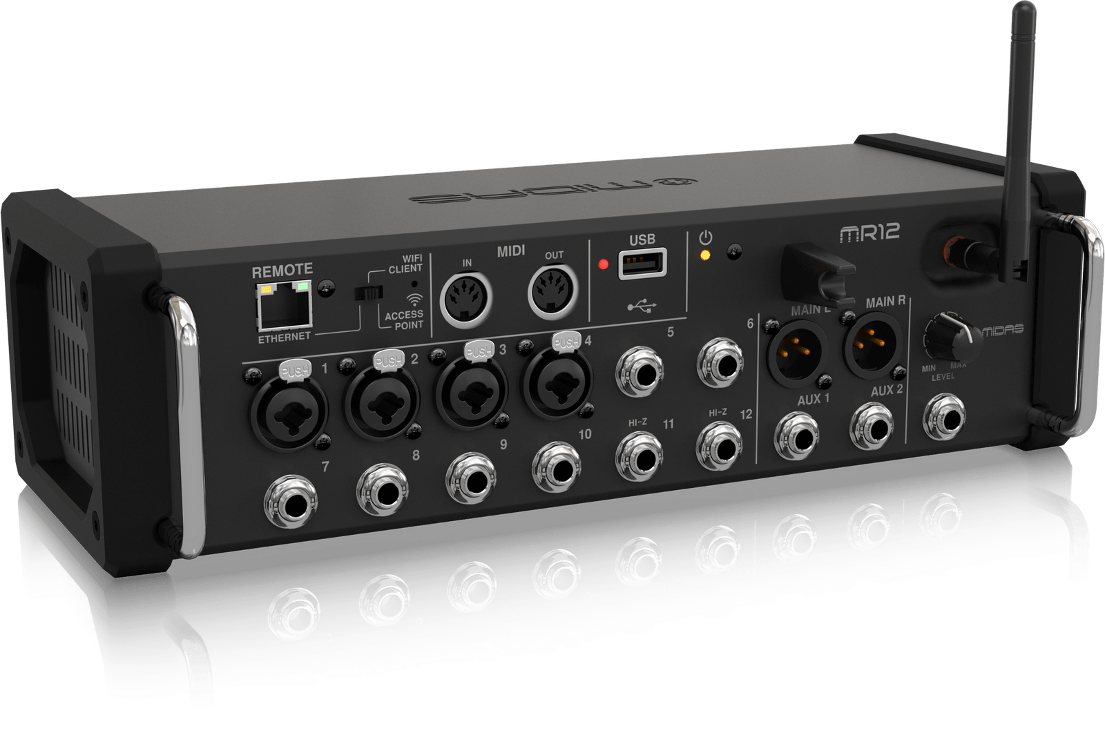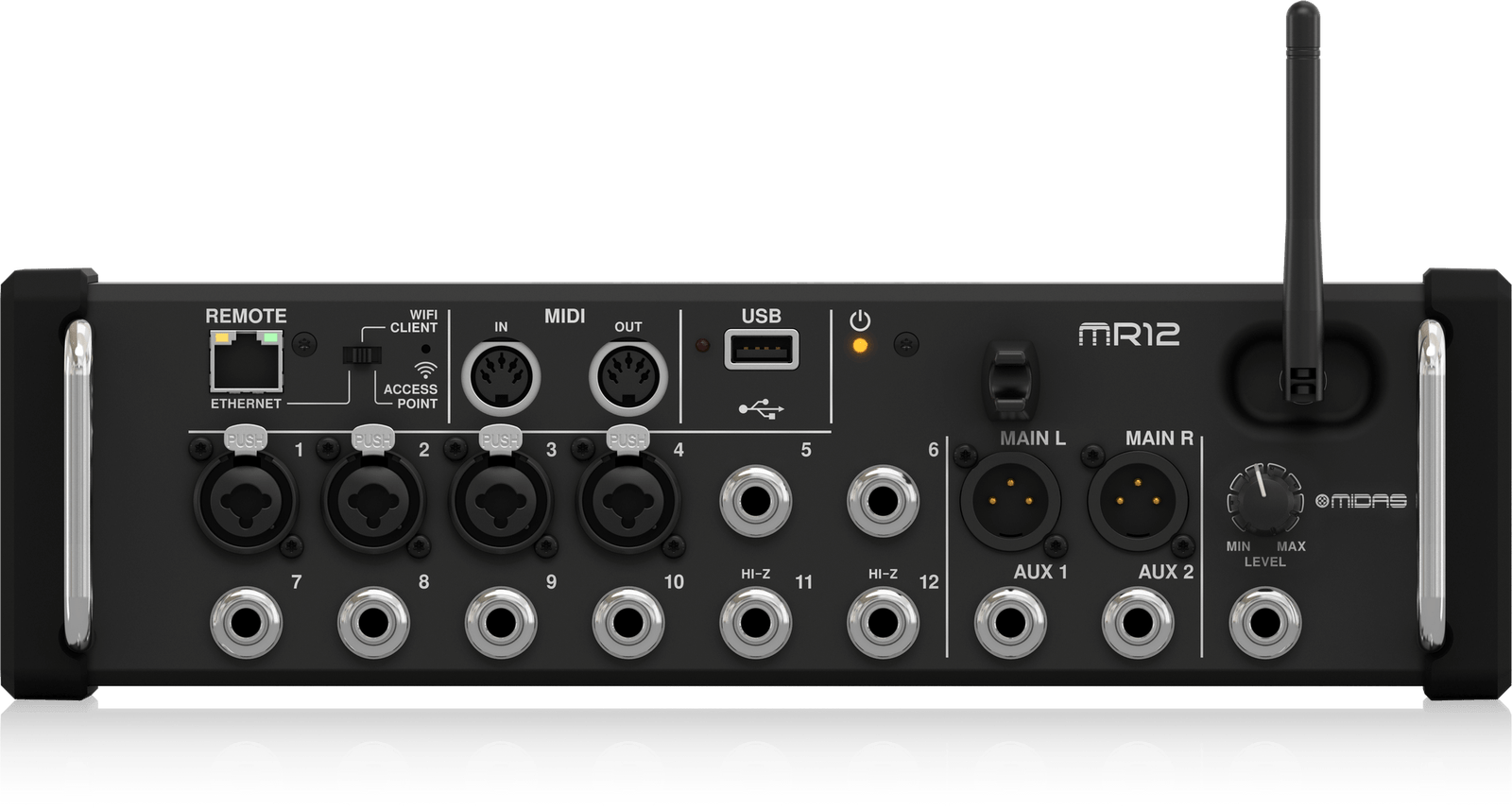 The MIDAS M32 completely transformed digital mixing. That cutting-edge technology is now integrated into the compact but mighty MR12 rack-mountable mixer, revolutionizing both live music performance and studio recording.