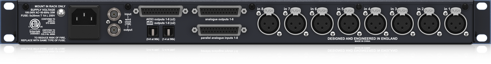 - Digital AES3 (AES/EBU) outputs on dual 25-way D-type connectors