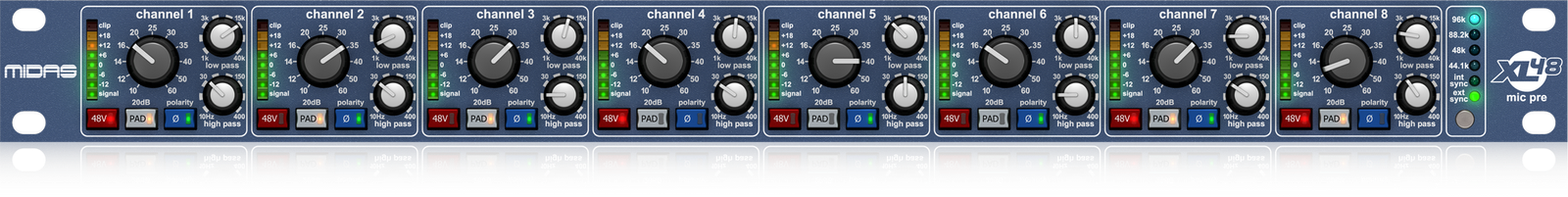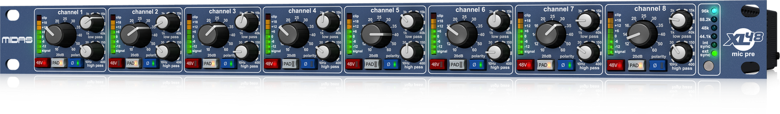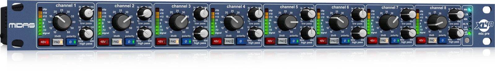 Midas XL48 8-Channel Microphone Preamplifier with 96 kHz ADC Converters and ADAT Outputs