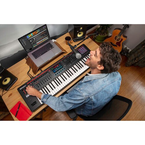 Made for gigging songwriters, composers, producers who want the freedom to go where the inspiration takes them, the Roland Fantom-06 is a 61-key music workstation that combines the sonic power and fluid workflow inherited from the flagship Fantom Series into a streamlined instrument with a lightweight and durable molded body designed for easy transport. Compose, perform, and produce with thousands of electronic and acoustic sounds powered by Roland’s advanced ZEN-Core and SuperNATURAL technologies (including SuperNATURAL pianos with authentic acoustic-grand sound and response, and Virtual ToneWheel organ sounds).