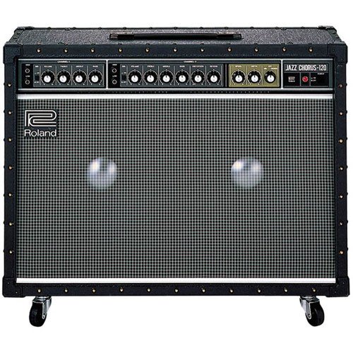 The Roland JC-120 Jazz Chorus is a 2-channel bi-amplified combo electric guitar amplifier, featuring 120 watts of total power and a true stereo chorus, the sound of which is already familiar from hundreds of popular recordings made since the mid-1970’s. The amplifiers’ original silver cone speakers have been re-introduced for that vintage look.