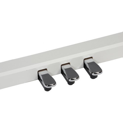 The white KPD-70 from Roland is a three-pedal unit for FP-30 and FP-30X digital pianos, which provides sustain, sostenuto, and the soft control that is commonly found on grand pianos. Additionally, when connected, one of the foot pedals can be used for hands-free turning of onscreen music pages while using mobile apps such as piaScore and Sheet Music Direct.
