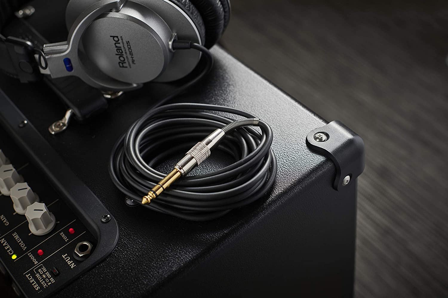 Styled in silver, the Roland RH-200S Headphones are a pair of over-ear closed-back headphones that excel for monitoring while recording, mixing, or editing in postproduction. The headphones offer 40mm drivers with neodymium magnets and copper-clad aluminum-wire voice coils for a clear, powerful, and accurate response. These headphones ship with an 11.2′ straight cable that terminates in a standard 3.5mm plug. A gold-plated 3.5mm to 1/4″ adapter is included for professional applications.