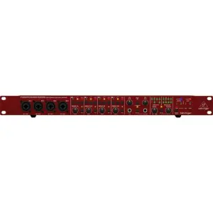 | Impedance | Headphone Outputs: 47 Ohms Hi-Z Inputs: 740 Kilohms (Unbalanced) Line Inputs: 17 Kilohms (Balanced) Mic Inputs: 5 Kilohms (Balanced) 10 Kilohms (Balanced) Outputs: 1.8 Kilohms (Balanced) |