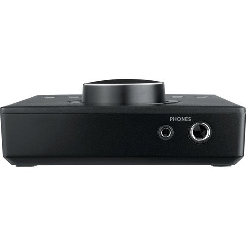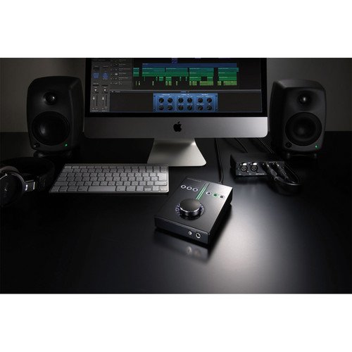 The Super UA uses a S1Lki DSP engine and a high resolution, audiophile-grade DAC that supports 2.8 MHz/1-bit DSD and 192 kHz/32-bit floating-point PCM playback with low-latency pro-studio performance. The enclosure is made from die-cast metal with rubber grips that prevents movement and features a large, multi-function knob surrounded by LEDs, along with recessed, illuminated buttons that allow direct access to all four inputs, two sets of monitors, and two sets of headphones. The Super UA ships with a 1 m USB cable and power supply.
