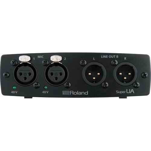 he UA-S10 Super UA from Roland is professional USB audio interface featuring 1-bit DSD and 32-bit PCM playback for audiophile sound, premium build quality, and low latency performance. The Super UA offers two balanced 1/4″ inputs and outputs on the main unit, while the included breakout box with attached connection cable offers balanced XLR microphone inputs and balanced XLR outputs for connecting to monitors. This modular concept allows for desktop studio operation with microphones and speakers, but lets you easily disconnect and use the main unit’s 1/4″ I/O while on-the-go.
