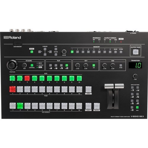 Live events requiring video production require a flexible video switcher like the Roland V-800HD MKII. This multi-format video switcher can accept a wide variety of sources and output them consistently to screens or projectors. Whether you’re switching video for a live presentation or live streaming, the V-800HD MKII has the features necessary for high-quality video switching.