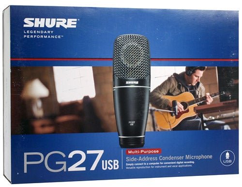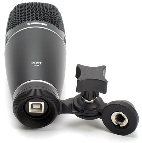 The Shure PG27USB Cardioid USB Microphone is designed to provide plug-and-play operation with Windows and Mac-based computers, while maintaining a flat frequency response that makes it versatile enough for any recording application.