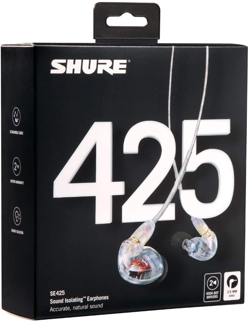 Shure SE425 Sound Isolating Earphones with Clear Cable, Crystal Treble, Powerful Bass
