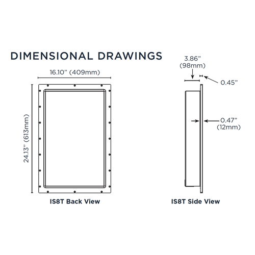 The Sonance IS8T Invisible Series speaker combines Sonance’s Wave Flex and Air Flex diaphragm technologies to deliver full-range, high-fidelity sound while remaining visually invisible after installation. Designed for premium commercial spaces where aesthetics matter, the IS8T uses a bending-wave 1.75″ voice coil wave flex driver paired with an 8″ carbon-fiber Air Flex woofer to reproduce deep bass and extended highs (40 Hz–30 kHz ±3 dB). It supports both low-impedance (4 Ω) and distributed-audio (70V/100V) systems via an integrated 60 W laminated-core transformer with multiple tap settings, and includes two independent self-resetting poly switches for overload protection and safety-agency compliance. With shallow mounting depth and a slim profile, the speaker is engineered to be concealed in walls while providing wide dispersion (≈170° hemispherical to 10 kHz) and robust 160 W RMS handling for demanding commercial installations.