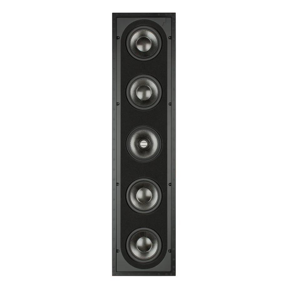 A high-output, three-way in-wall LCR speaker from Sonance’s Reference series. The R2 (SKU 93346) uses a 1″ ceramic-dome tweeter with ferrofluid cooling, a 5.25″ carbon-fiber midrange and four 5.25″ carbon-fiber woofers in an integrated enclosure — designed for clean dialogue, accurate imaging and use in home theaters or media rooms while fitting standard 2″×4″ wall cavities.