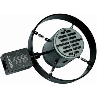 The Sontronics Corona is a dynamic vocal microphone designed with a unique, vintage-inspired look and modern functionality. It features a spring-suspended body within a circular outer ring, built-in pop filtering to manage plosives, and a ported capsule to enhance low frequencies, delivering a richer, fuller sound ideal for live and studio vocals.